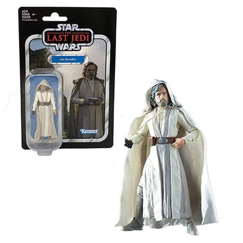 This Star Wars The Vintage Collection Luke Skywalker Jedi Master 3 3/4-Inch Action Figure includes a cloak.